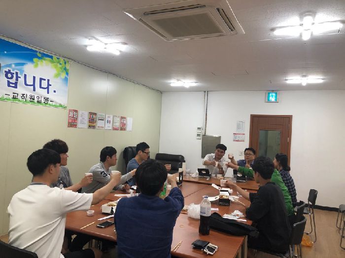 시작한지 벌써 3개월째가 되어가고 있는 4월시작반 학생들과 단합을 위한 치킨파티를 가졌습니다~!